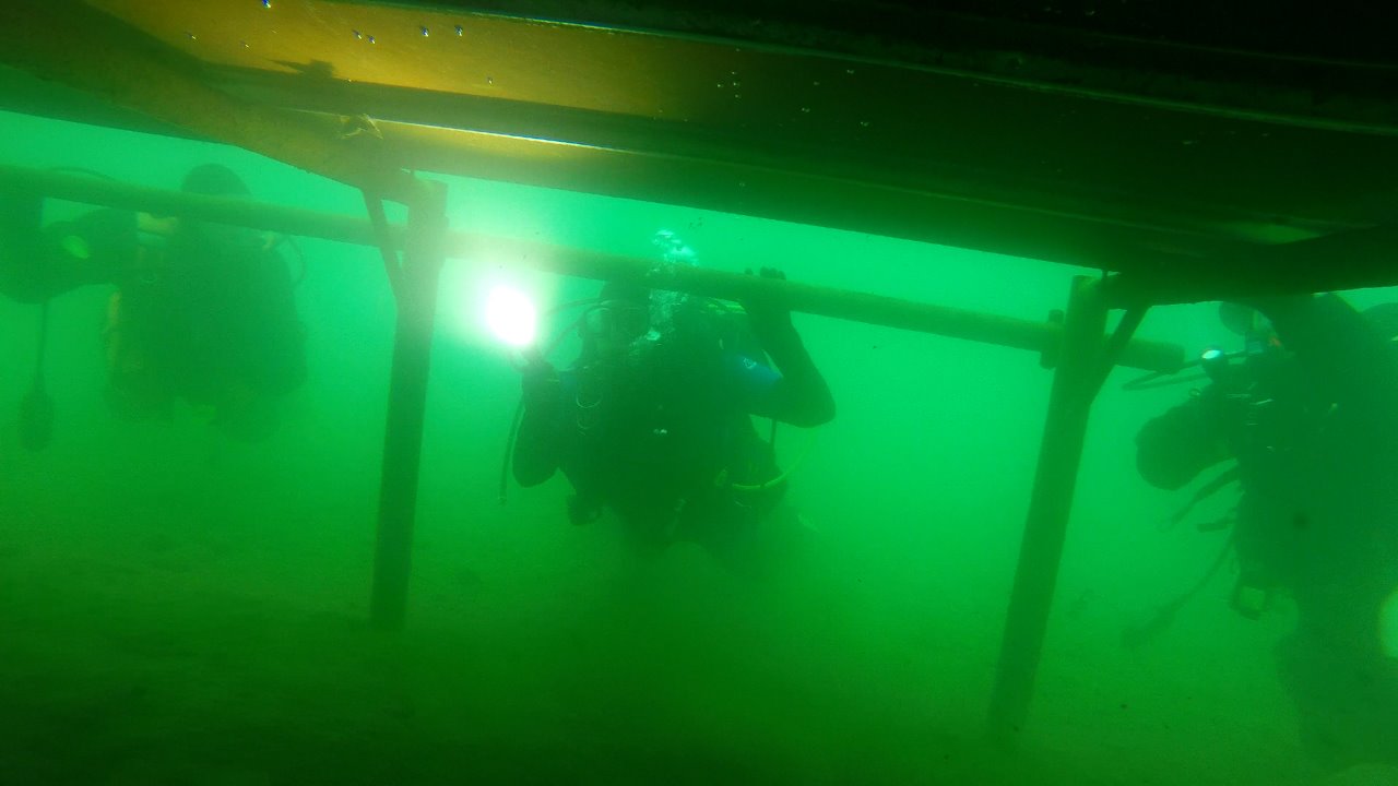 Unterwasser liegen 3 Plattformen und der betreibende Tauchladen hat ein paar Attraktionen versenkt,